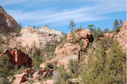 Wir wollen zum Bryce Canyon und fahren auf der Scenic Road 14 fast bis zur Hälfte zur Long Valley Junction als die Straße wegen Erdrutsche gesperrt ist. Na klasse. Hätte man nicht vorher ein Schild aufstellen können ? Also wieder zurück nach Cedar City die I15 zurück und zum Zion NP, den wir eigentlich auf dem Rückweg besuchen wollten. Beim letzten mal dort sind wir aus Zeitmangel einfach nur durchgefahren. Wir lassen uns jetzt mehr Zeit. Der Park gefällt uns gut. Hier sind sogar noch die Blätter an den Bäumen grün.