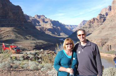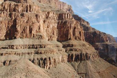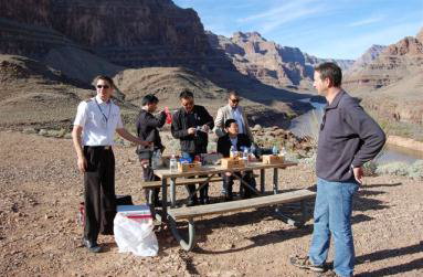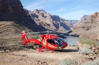 Es geht in die Höhe und wir fliegen zum Lake Meat und Hoover Dam. Es sieht alles so klein aus von oben. Dann kommen wir zum Grand Canyon. Unter uns schlängelt sich der Colorado wie ein alter Schnürsenkel. Wir landen auf einem Plateau und unser Pilot bereitet unser Picknick vor. Wir haben 30 Minuten Zeit um uns umzusehen, Fotos zu knipsen und zu essen. Wir wissen gar nicht wo wir zuerst hinsehen sollen. Es kommen noch andere Hubschrauber, aber das Areal ist weit und man bemerkt die anderen kaum. Wir unterhalten uns sehr nett mit dem Piloten und erfahren etwas über die Pilotenausbildung. Spaß daran hätte ich schon… Auf den Champagner verzichte ich aus oben genannten Gründen. Mir geht’s es gut und so soll es auch bleiben.