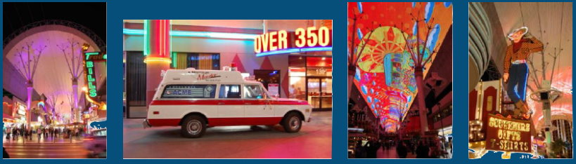 Nach eine kleinen Pause fahren wir nach Downtown Las Vegas, in die Freemont Street. Erny kennt das Freemont Street Experience noch nicht. Dabei handelt es sich um eine gewölbeförmige Kuppel, die 450 m lang und an der höchsten Stelle 27 m hoch ist. Nach Einsetzen der Dunkelheit werden dort LED-Shows gezeigt. Vor Beginn jeder dieser Shows werden an den angrenzenden Casinos die Beleuchtungen abgeschaltet. Das gefällt mir fast so gut wie vor dem Bellagio die Wasserspiele.
