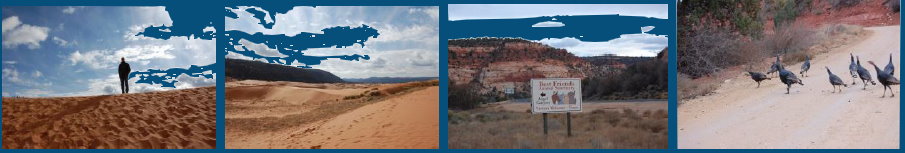 Als erstes fahren wir zum Movie Museum, das aber geschlossen hat. Dann geht’s zu den Coral Pink Sand Dunes. So spektakulär finden wir sie nicht. Ich habe auch keine Lust schon wieder Sanddünen zu erklimmen. Weiter fahren wir nochmal durch den Zion NP. Allerdings ist es heute sehr bedeckt und nieselig grau. Schöner wars mit Sonne. Wir fahren zum Kanab Canyon und beobachten viele Tiere. Hier ist jagen verboten ! Rehe und Truthähne laufen am Auto vorbei. Außerdem ist hier ein sehr großes Tierheim und verschiedene Tierfriedhöfe.