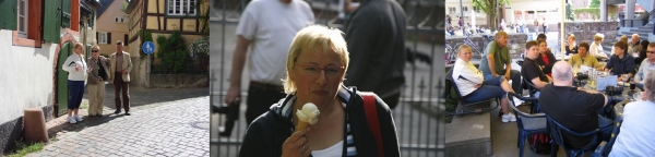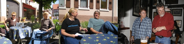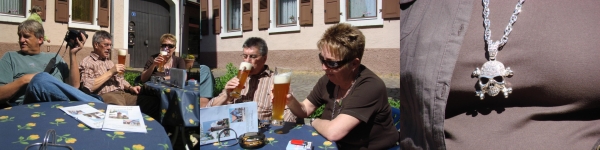 Nach dem Viel-zu-früh-Stück („Wann möchten Sie frühstücken? – „So spät wie möglich.“ – „Um 9 Uhr?“) vertrieben wir uns die Zeit mit Städtchenbesichtigung. Ladenburg entpuppte sich als bedeutend handlicher als erwartet. Man kann sich weder verlaufen noch verpassen. So kam selbst Guildo2, der uns bis dahin noch nicht persönlich kannte, sehr zielsicher auf uns zu. Na ja, Volkers Antlitz ist sowohl weltberühmt als auch unverkennbar. Zwischendurch schaute immer mal einer im Luschtgarde vorbei um zu schauen, ob schon jemand Neues eingetrudelt ist. So gabelten wir als Ersten Otto auf und im Laufe des Nachmittages vermehrten wir uns unkontrolliert.