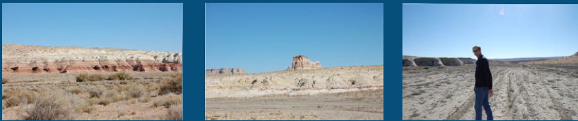 Heute fahren wir die 89 nach Westen. Die Sonne lacht wieder und der Himmel ist strahlend blau. Als erstes wollen wir heute zu den White Ghosts. Denken wir. Ich habe zwar eine Beschreibung und durch den Sand sehen wir Fußspuren. Wir laufen und laufen. Noch um die nächste Kurve und noch eine und noch eine. Dann hat Erny keine Lust mehr, weil wir gar nicht wissen, ob wir überhaupt in der richtigen Richtung gehen und haben keine Ahnung wie weit es überhaupt ist. Er will zurück zum Auto.